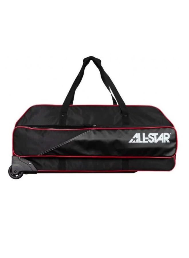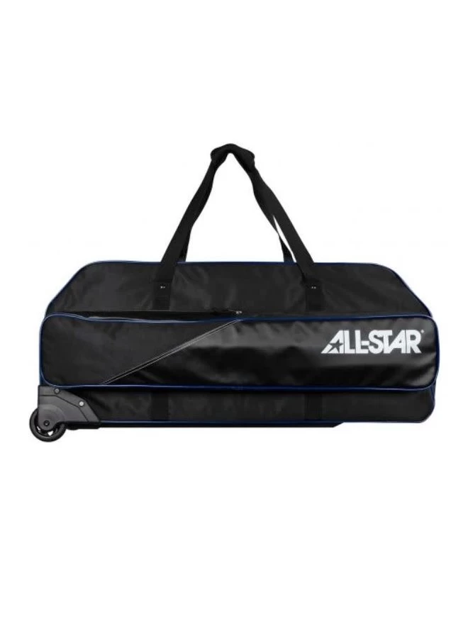 The All Star Advanced Pro Roller Catcher’s Equipment Bag is perfect for getting all your gear to the field or locker room. Featuring heavy duty nylon material plus heavy duty wheels with lots of clearance to get up and over anything in your way. Large interior holds a full set of catcher’s equipment plus other gear. Easy load side panel holds 3 full size bats. Extra pockets plus a cable case for your chargers and phone cords.