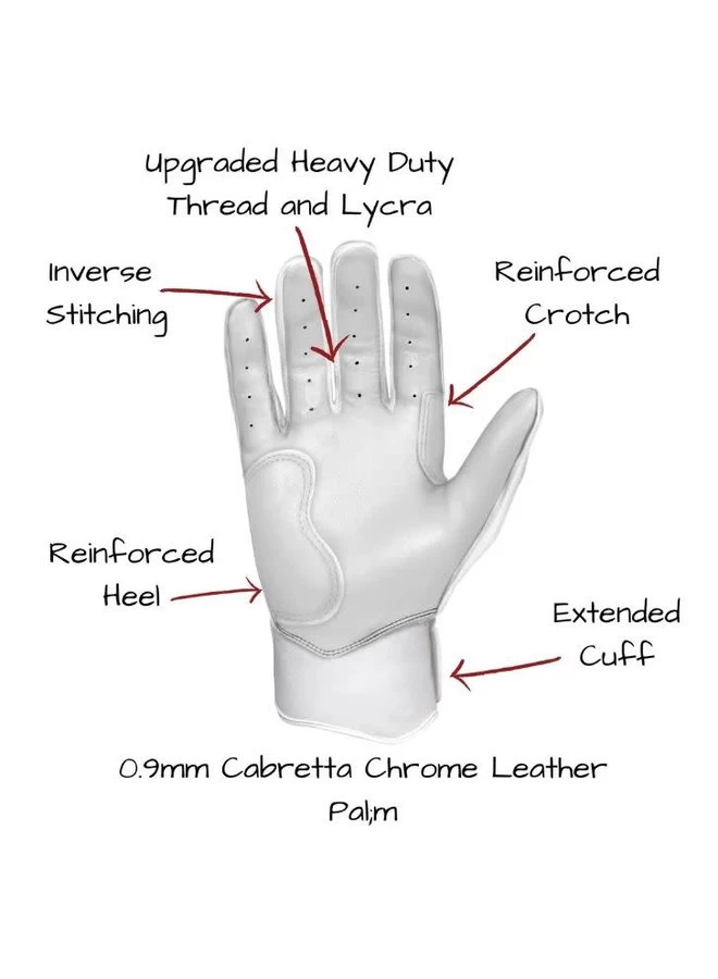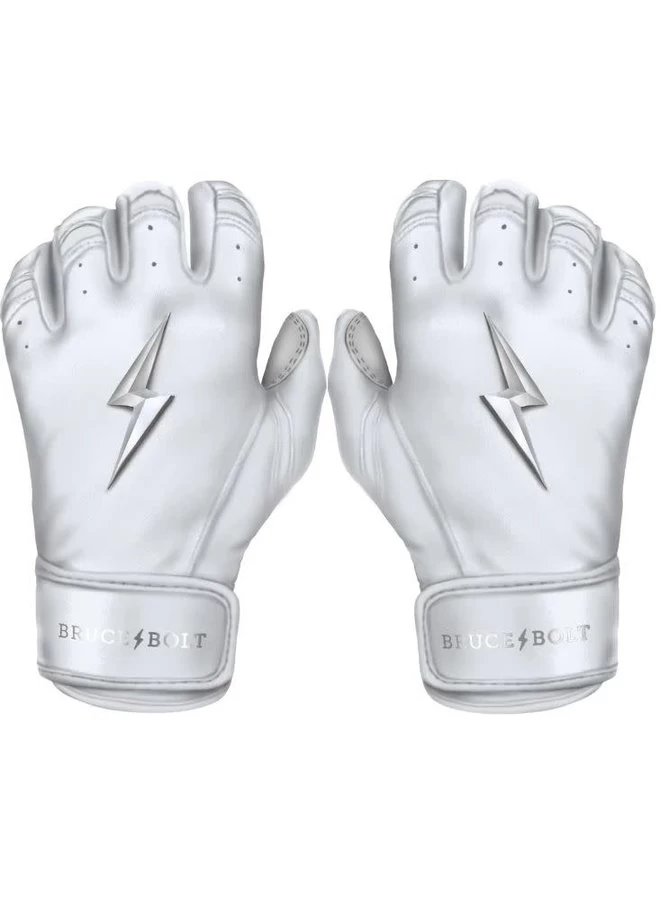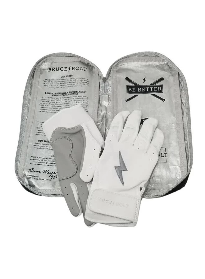 HIGHEST QUALITY, MOST DURABLE BATTING GLOVE IN BASEBALL: Each pair of BRUCE BOLT batting gloves are handmade by skilled craftsmen using only the highest quality 0.9mm Cabretta leather and stitching techniques which makes our gloves buttery soft but more durable than any other glove on the market.
