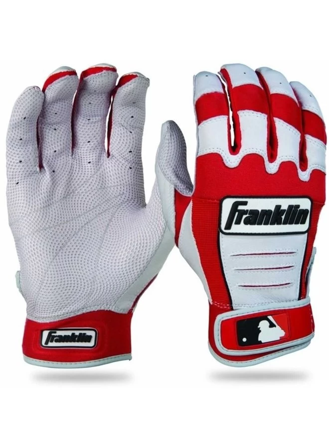 The Franklin CFX Pro Series Baseball Batting Gloves are worn by the most Franklin Pros in the majors today including stars like Paul Goldschmidt, Justin Turner, Ronald Acuna Jr., and Gary Sanchez. These major league gloves are designed to improve performance and increase grip on any bat in all weather conditions. Made with PITTARDS DIGITAL sheepskin leather the CFX Pro Series batting glove provide long-lasting softness and tactility. Find the perfect color to match your team’s colors from our extensive collection of custom batting gloves.