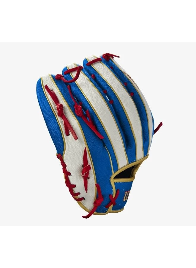 Mookieās 12.5ā design is engineered with lightweight Royal Blue and White SuperSkinā¢, a moisture-resistant material that sheds glove weight and improves control when tracking fly balls in the gap and robbing home runs at the wall. Mookieās signature is imprinted in the Royal Blue Pro StockĀ® Select leather palm, and Double Palm Construction forms to your hand during the break-in process for unmatched feel and fit. Command this 12.5ā glove to corral any ball hit your way and flash the subtle gold binding to bring luster to the outfield.