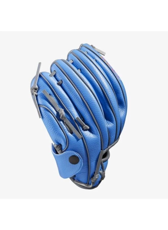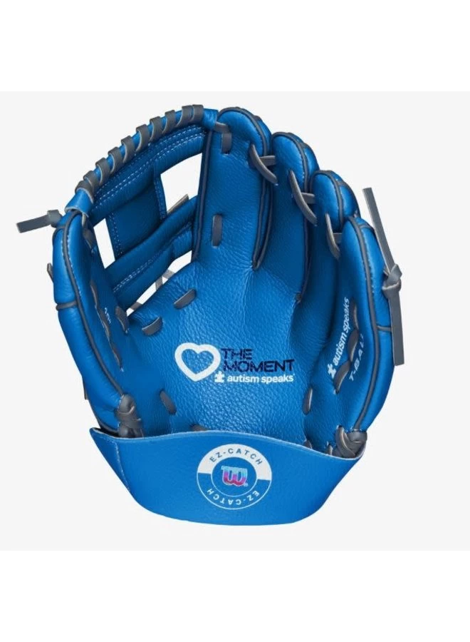 This 10” T-Ball glove displays the Autism Speaks Blue colorway and Love the Moment branding in the palm. With a lightweight feel and EZ Catch wrist strap, this youth glove is ideal for rising T-Ball stars.